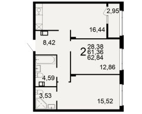 Общая площадь62,84 м²
