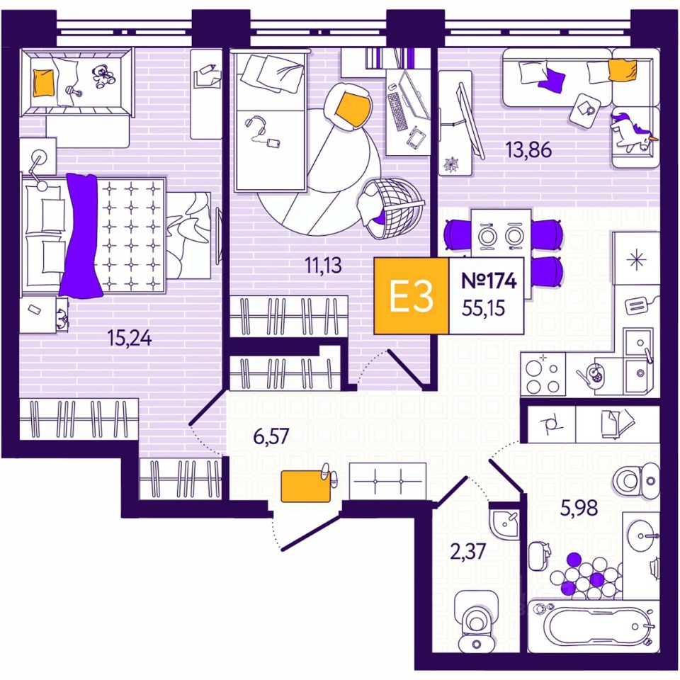 Общая площадь55,15 м²