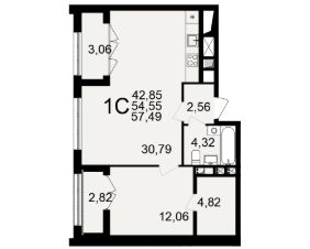 54,55 м²