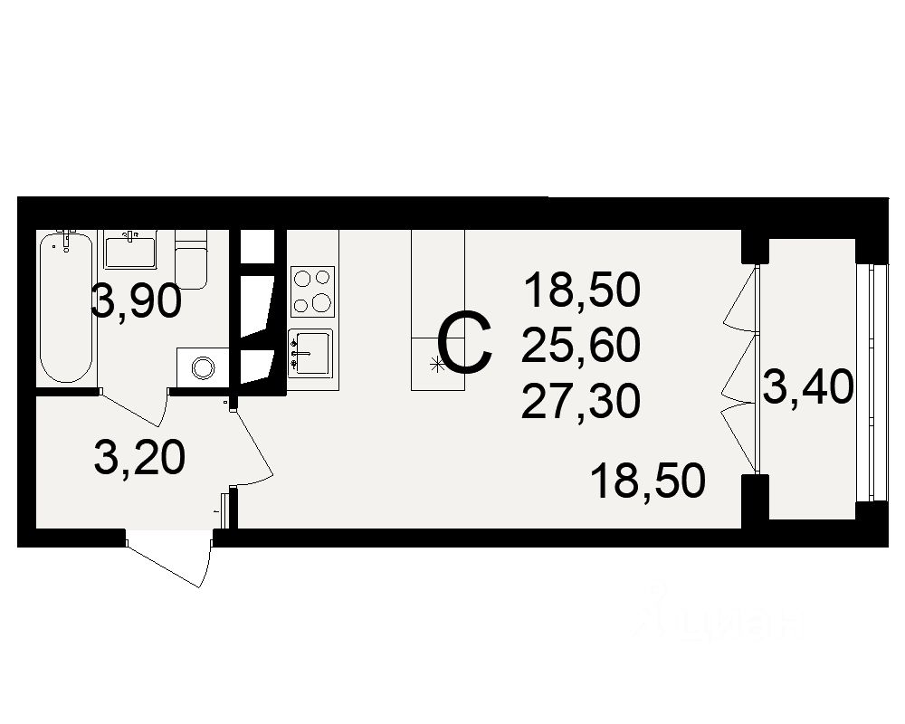25,6 м²