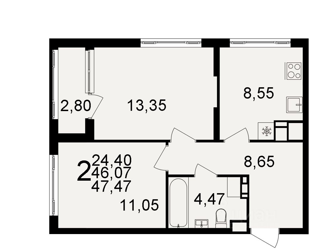 Продаётся 2-комнатная квартира в строящемся доме (Дом 1), срок сдачи: II-кв. 2026, общей площадью 46.07 кв.м., на 2 этаже. Что значит дышать вместе с ГК "ЕДИНСТВО"? Оказаться в месте слияния человека с природой, располагающему к активному образу жизни и поиску вдохновения. Мы создали самодостаточный район, который поможет нашим жителям сделать перезагрузку, восстановиться перед новыми достижениями и прожить с наслаждением каждую минуту.