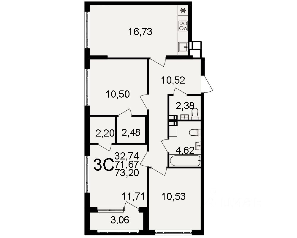 Продаётся 3-комнатная квартира в строящемся доме (Дом 1), срок сдачи: II-кв. 2026, общей площадью 71.67 кв.м., на 6 этаже. Что значит дышать вместе с ГК "ЕДИНСТВО"? Оказаться в месте слияния человека с природой, располагающему к активному образу жизни и поиску вдохновения. Мы создали самодостаточный район, который поможет нашим жителям сделать перезагрузку, восстановиться перед новыми достижениями и прожить с наслаждением каждую минуту.