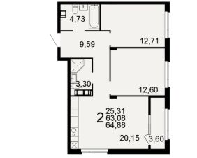 Продаётся 2-комнатная квартира в строящемся доме (Самоварная, 1А (поз.1)), срок сдачи: III-кв. 2026, общей площадью 64.88 кв.м., на 9 этаже.