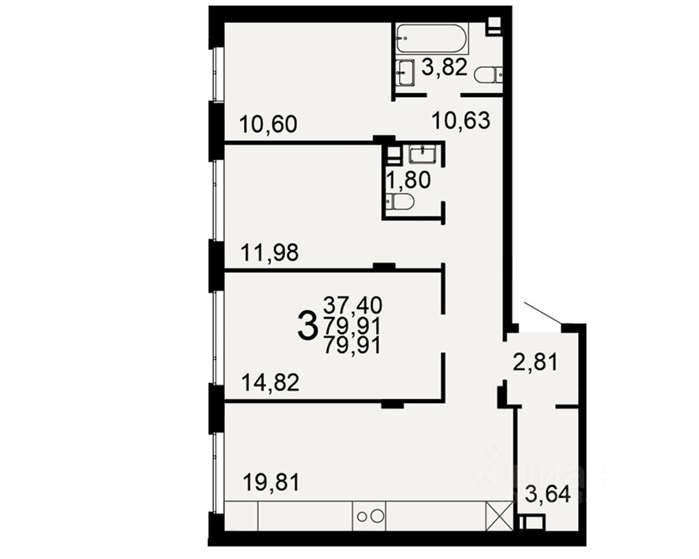 Продаётся 3-комнатная квартира в строящемся доме (Самоварная, 1А (поз.1)), срок сдачи: III-кв. 2026, общей площадью 79.91 кв.м., на 3 этаже.