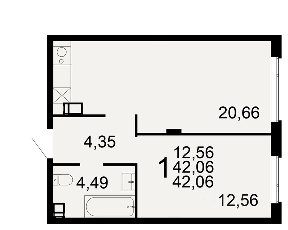 Продаётся 1-комнатная квартира в строящемся доме (Самоварная, 1А (поз.1)), срок сдачи: III-кв. 2026, общей площадью 42.06 кв.м., на 4 этаже.