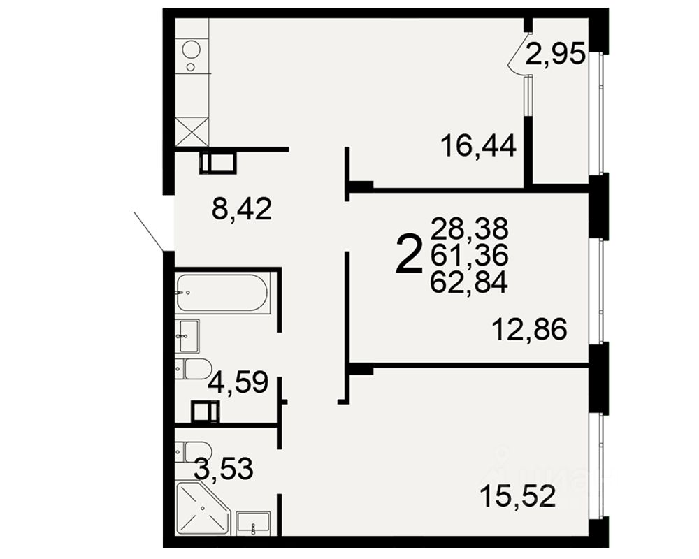 Продаётся 2-комнатная квартира в строящемся доме (Самоварная, 1А (поз.1)), срок сдачи: III-кв. 2026, общей площадью 62.84 кв.м., на 6 этаже.