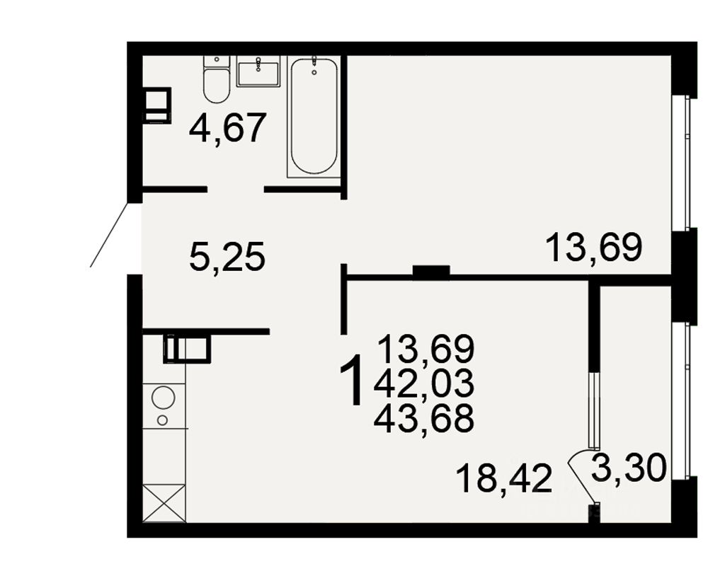 Общая площадь43,68 м²