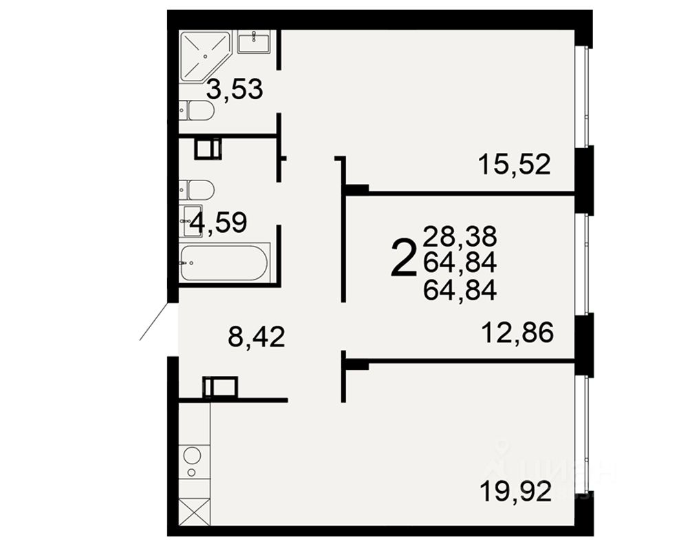 Общая площадь64,84 м²