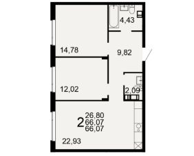 Продаётся 2-комнатная квартира в строящемся доме (Самоварная, 1А (поз.1)), срок сдачи: III-кв. 2026, общей площадью 66.07 кв.м., на 3 этаже.