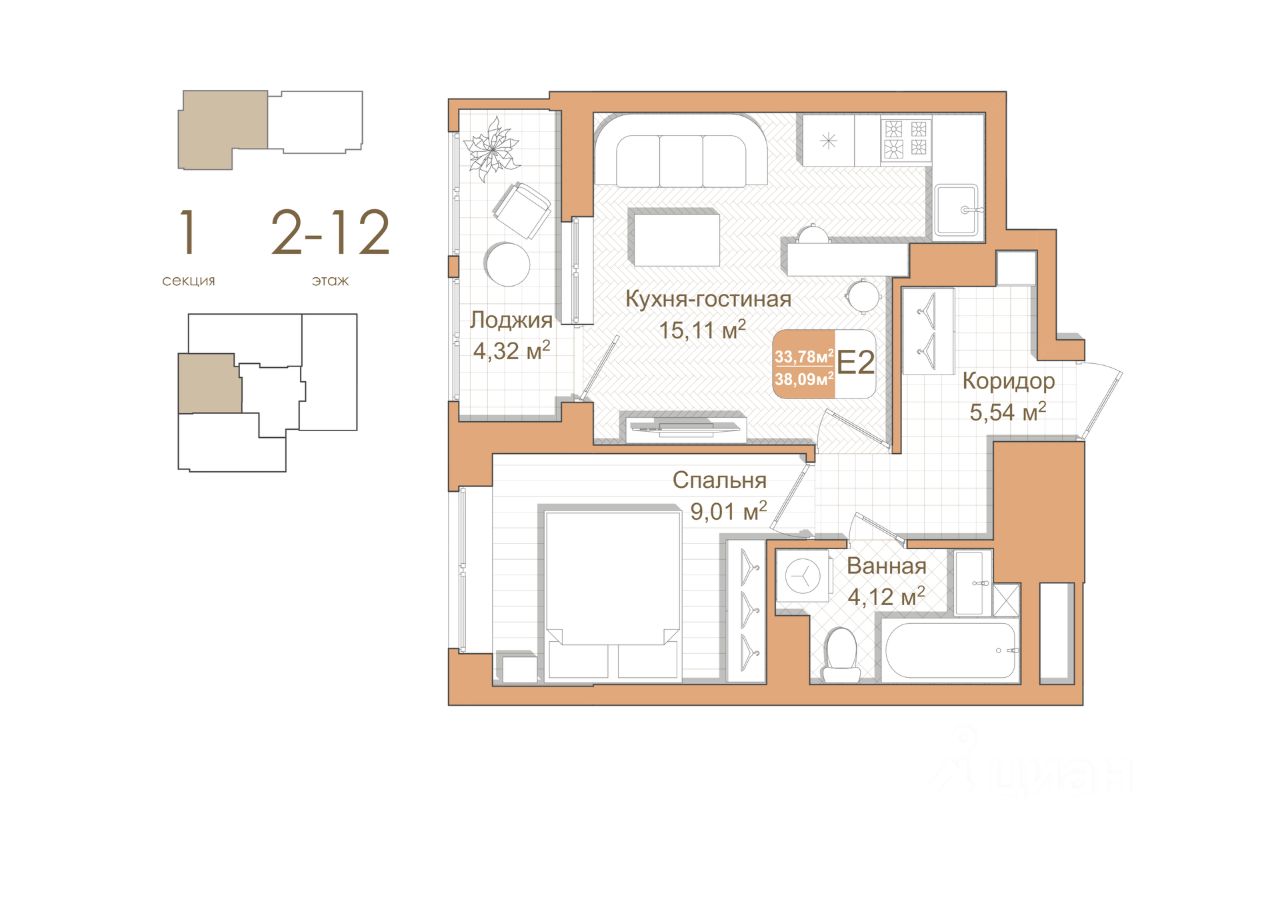 Продаётся 1-комнатная квартира в сданном доме (Клинской проезд, 12 (Корпус 4)), срок сдачи: IV-кв. 2024, общей площадью 38.09 кв.м., на 9 этаже. РАСПОЛОЖЕНИЕ