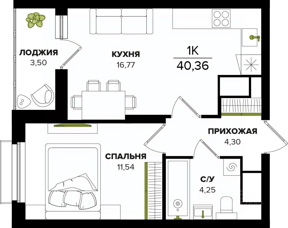 Общая площадь40,36 м²
