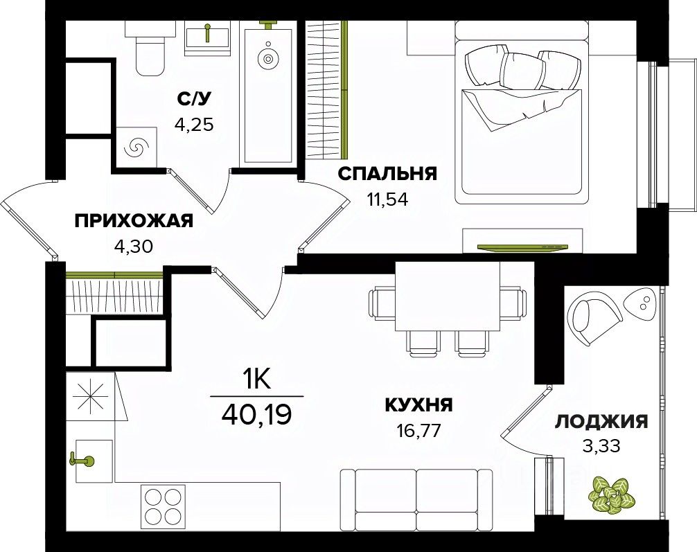 Общая площадь40,19 м²
