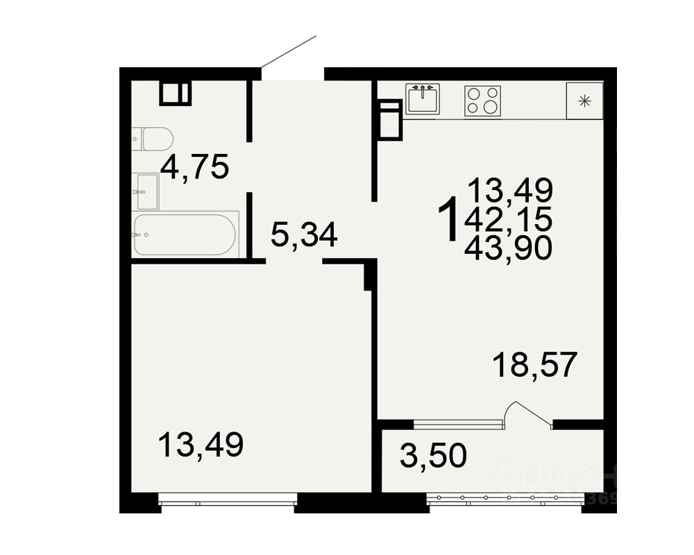 43,9 м²