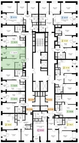 Площадь 33.7 на 9 этаже.