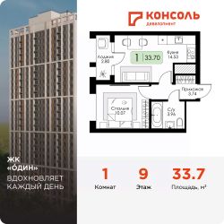 Продается однокомнатная квартира 94 без отделки в ЖК "ОДИН" от застройщика | Чистовая отделка | Семейная ипотека 3,5%