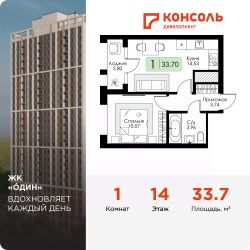 Площадь 33.7 на 14 этаже.