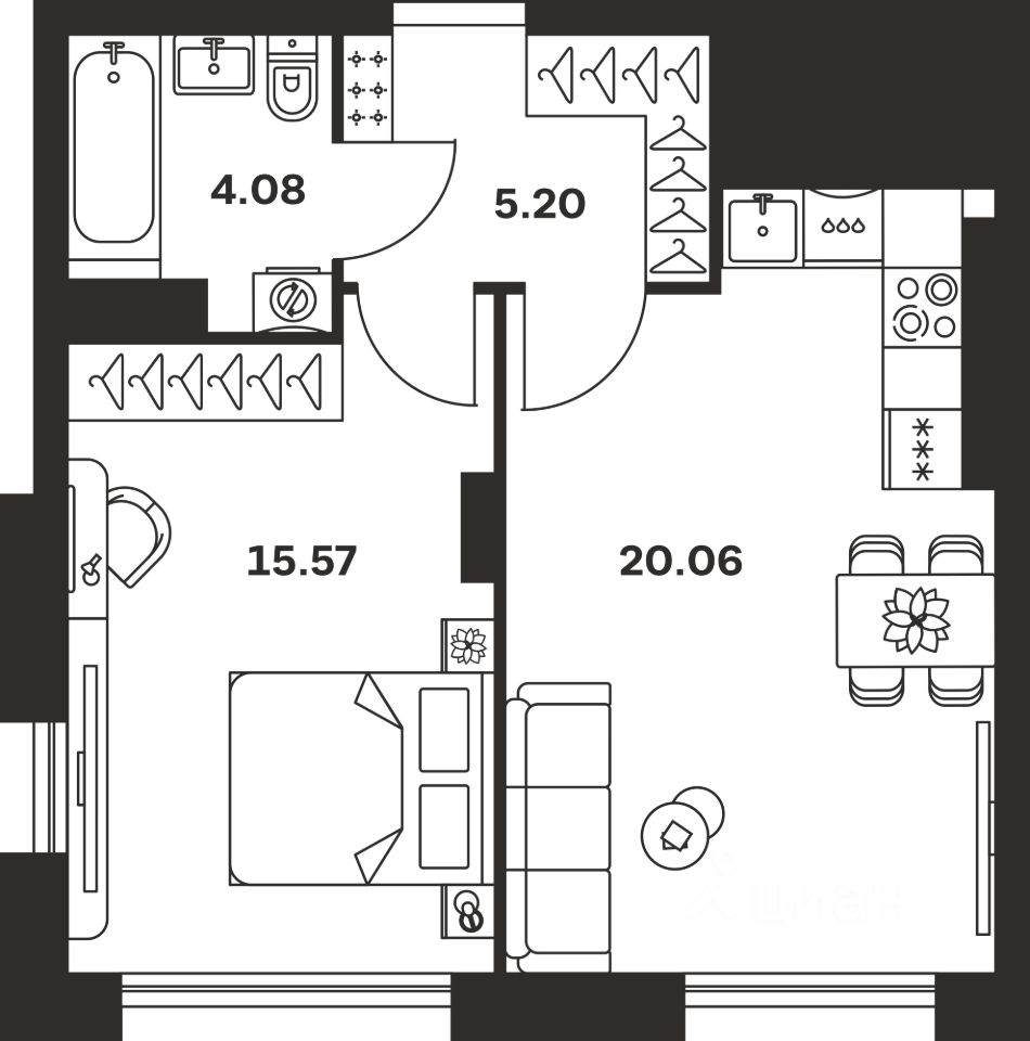 Общая площадь44,91 м²