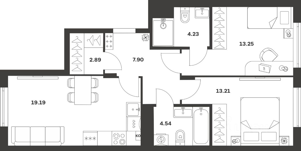 Продается 2-комн. квартира, 65,21 м²