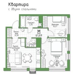 Продаётся 2-комнатная квартира в строящемся доме (Дом 9), срок сдачи: IV-кв. 2026, общей площадью 61.69 кв.м., на 5 этаже. Жилой комплекс "5 Баллов" от застройщика "СЗ Квартал" в поселке молодежный Тульской области.