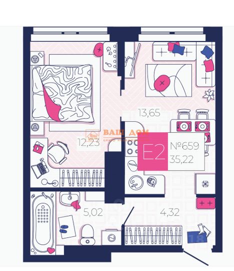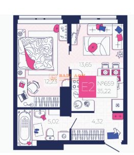 • Удачная планировка 35 м² — легко зонируется: кухня-гостиная + уютная спальня
