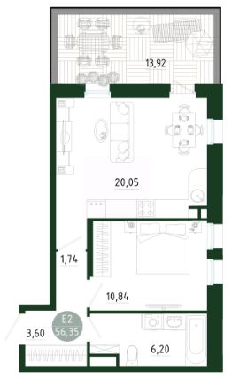 Продаётся 2-комнатная квартира в строящемся доме (Позиция 1), срок сдачи: III-кв. 2029, общей площадью 56.35 кв.м., на 1 этаже. Новый жилой комплекс в г. Тула "Платон Парк" от застройщика ООО "СЗ "МОНОЛИТ""