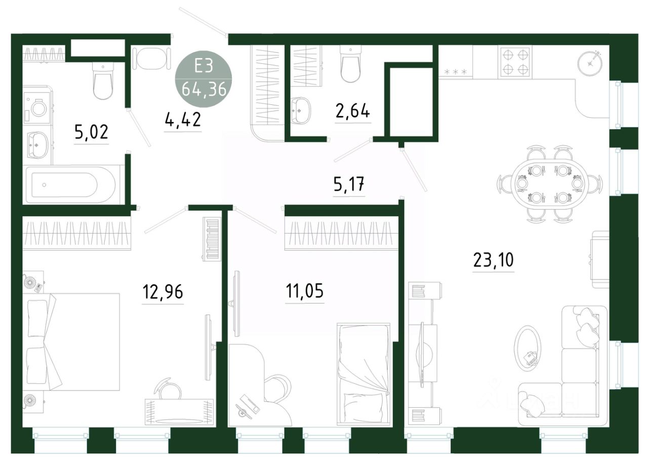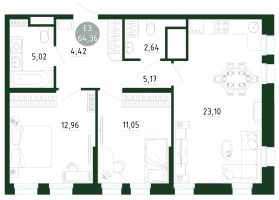 Продаётся 2-комнатная квартира в строящемся доме (Позиция 1), срок сдачи: III-кв. 2029, общей площадью 64.36 кв.м., на 1 этаже. Новый жилой комплекс в г. Тула "Платон Парк" от застройщика ООО "СЗ "МОНОЛИТ""