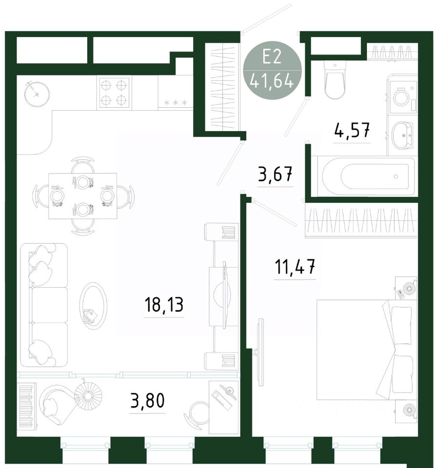 Продаётся 1-комнатная квартира в строящемся доме (Позиция 1), срок сдачи: III-кв. 2029, общей площадью 41.64 кв.м., на 2 этаже. Новый жилой комплекс в г. Тула "Платон Парк" от застройщика ООО "СЗ "МОНОЛИТ""