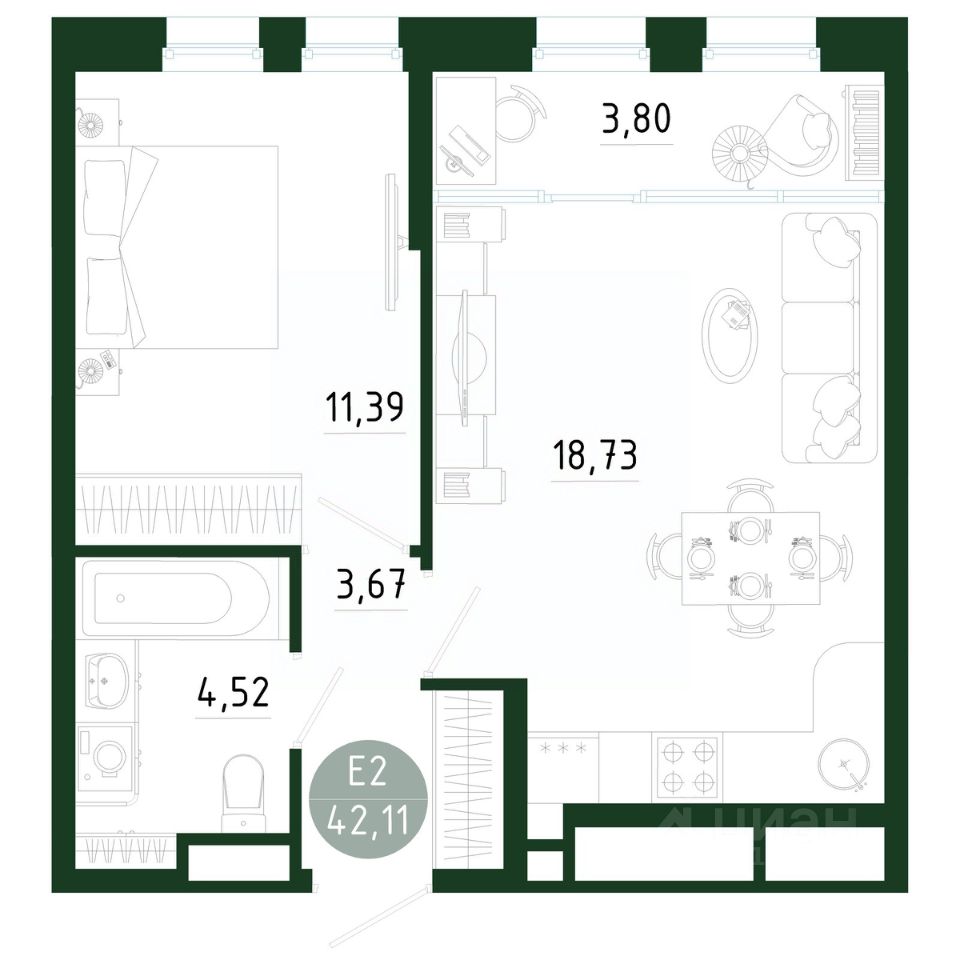 42,11 м²