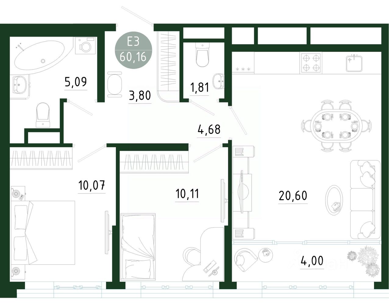 Продаётся 2-комнатная квартира в строящемся доме (Позиция 1), срок сдачи: III-кв. 2029, общей площадью 60.16 кв.м., на 7 этаже. Новый жилой комплекс в г. Тула "Платон Парк" от застройщика ООО "СЗ "МОНОЛИТ""