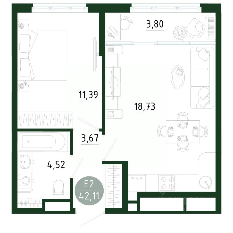 42,11 м²