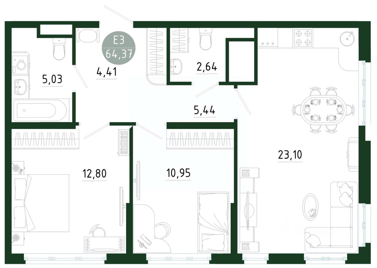 64,37 м²