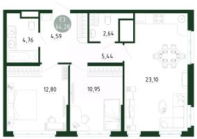 Продаётся 2-комнатная квартира в строящемся доме (Позиция 1), срок сдачи: III-кв. 2029, общей площадью 64.28 кв.м., на 16 этаже. Новый жилой комплекс в г. Тула "Платон Парк" от застройщика ООО "СЗ "МОНОЛИТ""