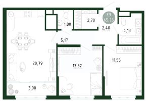 Продаётся 2-комнатная квартира в строящемся доме (Позиция 1), срок сдачи: III-кв. 2029, общей площадью 65.76 кв.м., на 23 этаже. Новый жилой комплекс в г. Тула "Платон Парк" от застройщика ООО "СЗ "МОНОЛИТ""