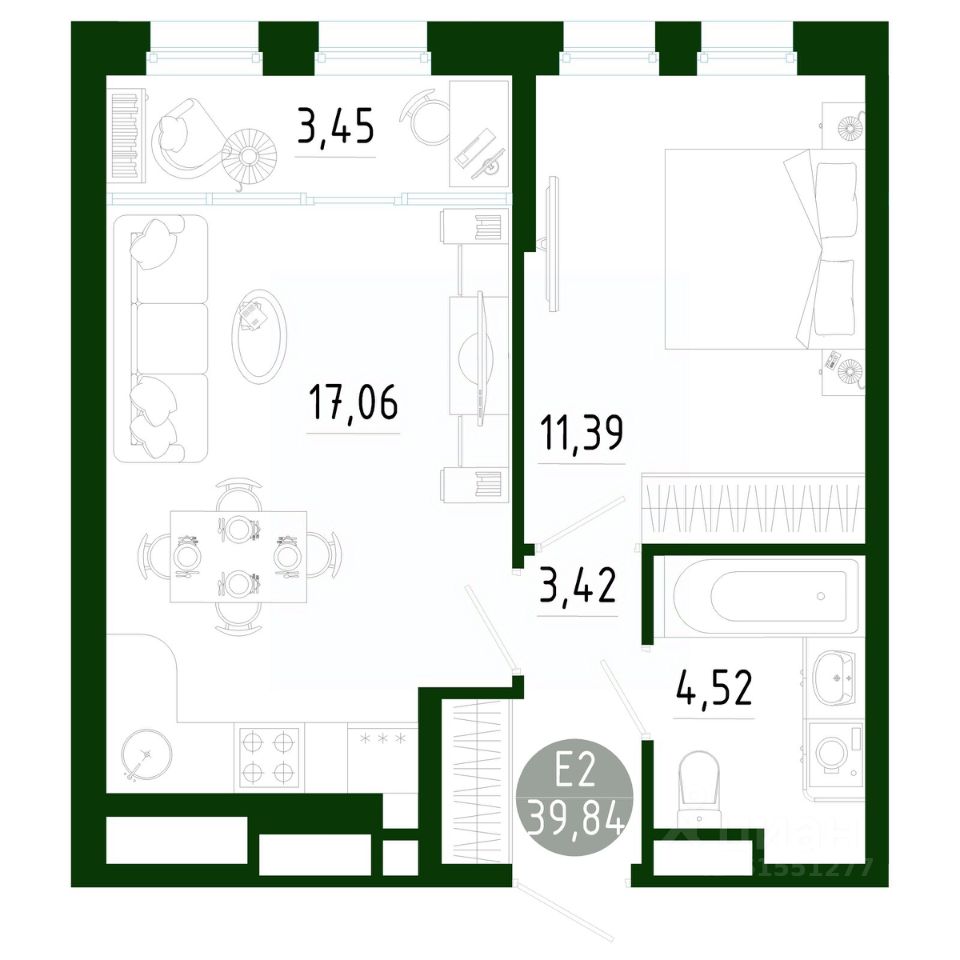 Продаётся 1-комнатная квартира в строящемся доме (Позиция 2), срок сдачи: III-кв. 2029, общей площадью 39.84 кв.м., на 1 этаже. Новый жилой комплекс в г. Тула "Платон Парк" от застройщика ООО "СЗ "МОНОЛИТ""