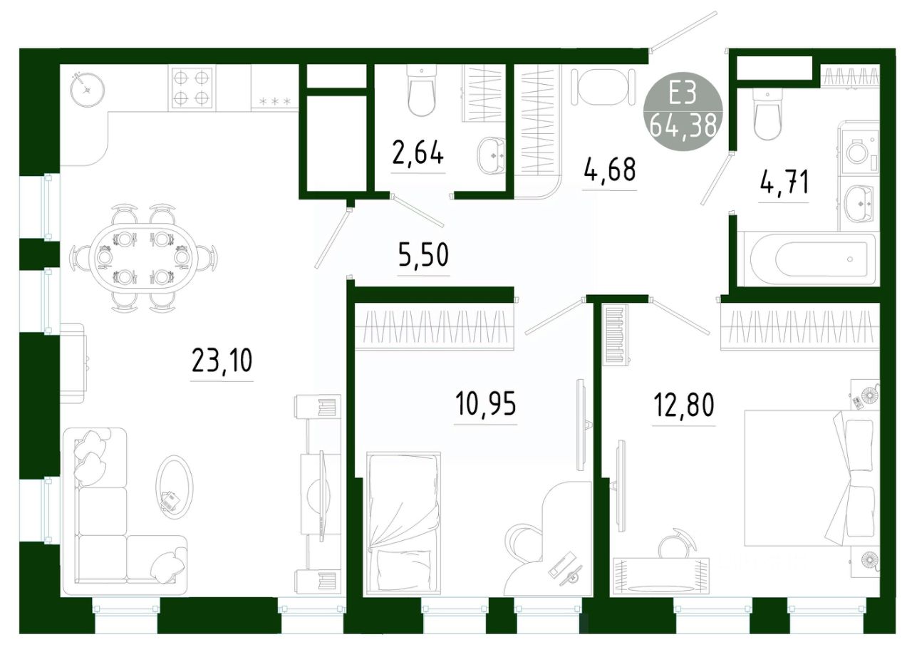 64,38 м²