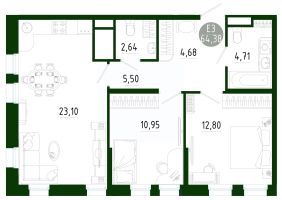 Продаётся 2-комнатная квартира в строящемся доме (Позиция 2), срок сдачи: III-кв. 2029, общей площадью 64.38 кв.м., на 2 этаже. Новый жилой комплекс в г. Тула "Платон Парк" от застройщика ООО "СЗ "МОНОЛИТ""