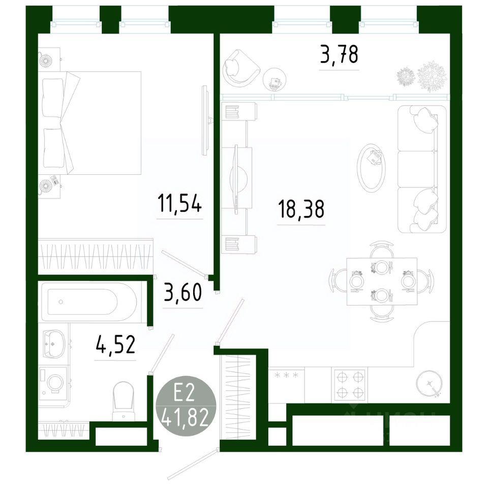 Продаётся 1-комнатная квартира в строящемся доме (Позиция 2), срок сдачи: III-кв. 2029, общей площадью 41.82 кв.м., на 6 этаже. Новый жилой комплекс в г. Тула "Платон Парк" от застройщика ООО "СЗ "МОНОЛИТ""