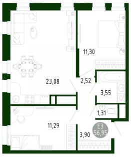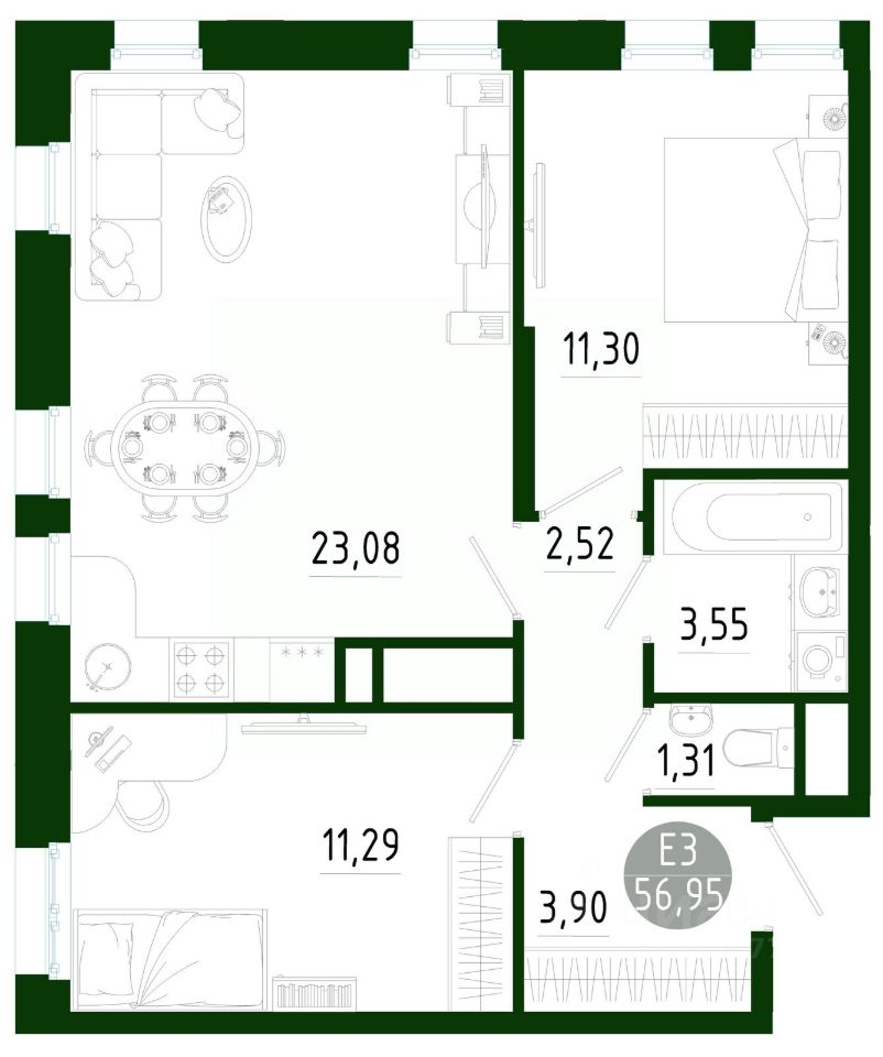 56,95 м²