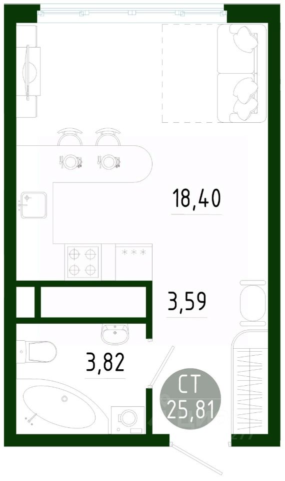 Продаётся студия в строящемся доме (Позиция 2), срок сдачи: III-кв. 2029, общей площадью 25.81 кв.м., на 9 этаже. Новый жилой комплекс в г. Тула "Платон Парк" от застройщика ООО "СЗ "МОНОЛИТ""