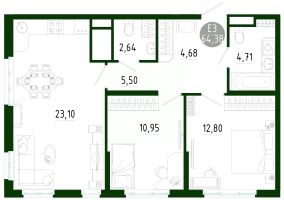 Продаётся 2-комнатная квартира в строящемся доме (Позиция 2), срок сдачи: III-кв. 2029, общей площадью 64.38 кв.м., на 10 этаже. Новый жилой комплекс в г. Тула "Платон Парк" от застройщика ООО "СЗ "МОНОЛИТ""