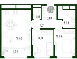 Продаётся 2-комнатная квартира в строящемся доме (Позиция 2), срок сдачи: III-кв. 2029, общей площадью 59.08 кв.м., на 13 этаже. Новый жилой комплекс в г. Тула "Платон Парк" от застройщика ООО "СЗ "МОНОЛИТ""