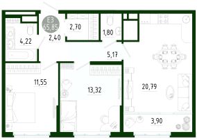 Продаётся 2-комнатная квартира в строящемся доме (Позиция 2), срок сдачи: III-кв. 2029, общей площадью 65.85 кв.м., на 13 этаже. Новый жилой комплекс в г. Тула "Платон Парк" от застройщика ООО "СЗ "МОНОЛИТ""