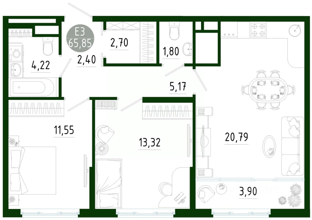 Продаётся 2-комнатная квартира в строящемся доме (Позиция 2), срок сдачи: III-кв. 2029, общей площадью 65.85 кв.м., на 14 этаже. Новый жилой комплекс в г. Тула "Платон Парк" от застройщика ООО "СЗ "МОНОЛИТ""