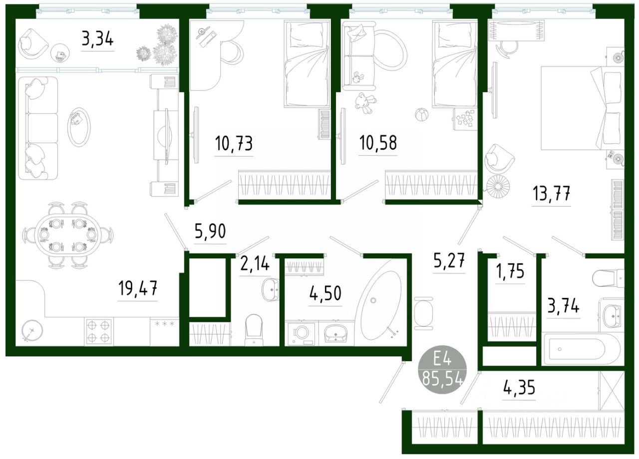 Продаётся 3-комнатная квартира в строящемся доме (Позиция 2), срок сдачи: III-кв. 2029, общей площадью 85.54 кв.м., на 17 этаже. Новый жилой комплекс в г. Тула "Платон Парк" от застройщика ООО "СЗ "МОНОЛИТ""