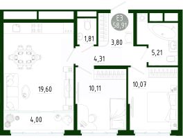 Продаётся 2-комнатная квартира в строящемся доме (Позиция 2), срок сдачи: III-кв. 2029, общей площадью 58.91 кв.м., на 18 этаже. Новый жилой комплекс в г. Тула "Платон Парк" от застройщика ООО "СЗ "МОНОЛИТ""