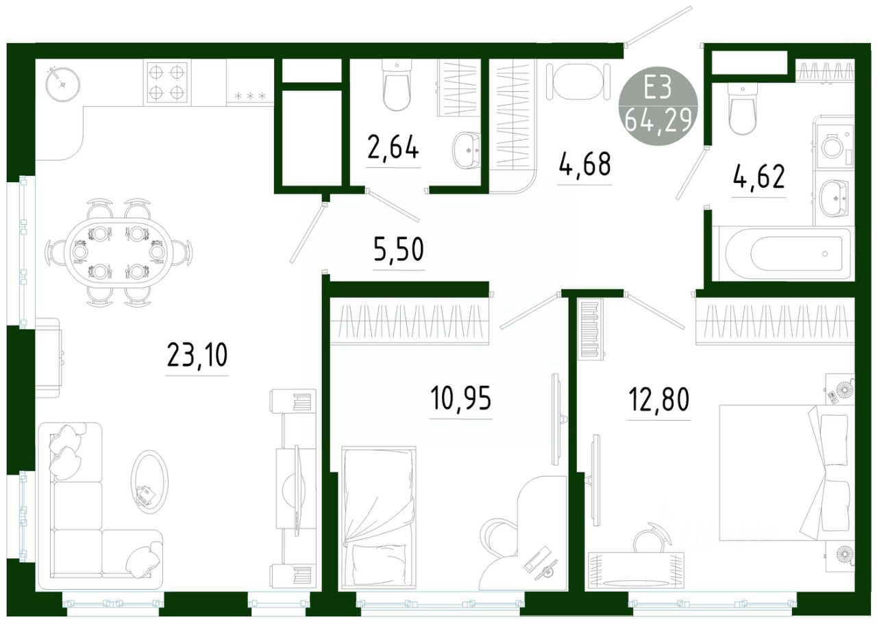 64,29 м²