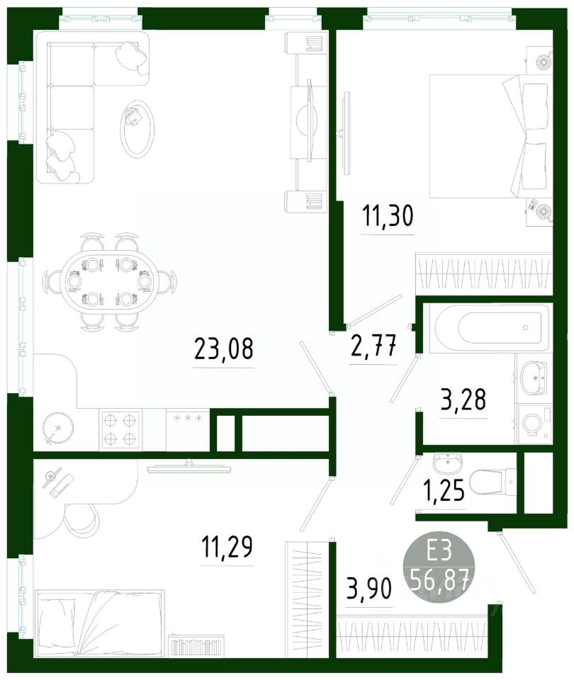 56,87 м²