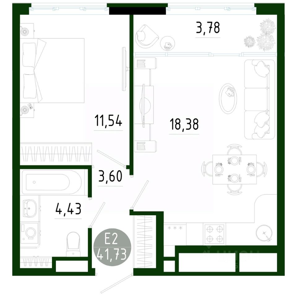 Общая площадь41,73 м²