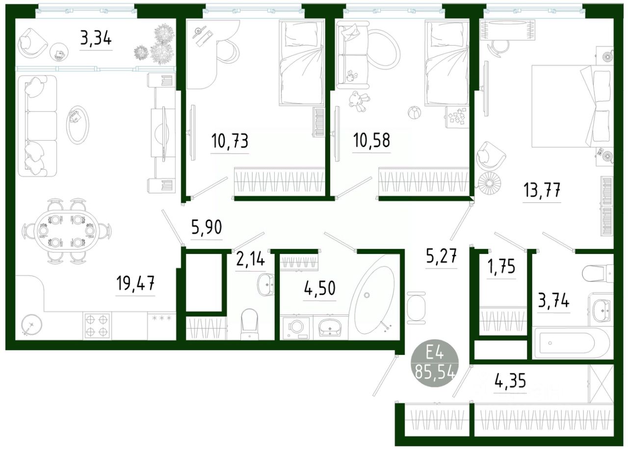 Продаётся 3-комнатная квартира в строящемся доме (Позиция 2), срок сдачи: III-кв. 2029, общей площадью 85.54 кв.м., на 25 этаже. Новый жилой комплекс в г. Тула "Платон Парк" от застройщика ООО "СЗ "МОНОЛИТ""
