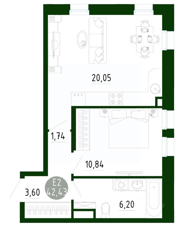 Продаётся 1-комнатная квартира в строящемся доме (Позиция 2), срок сдачи: III-кв. 2029, общей площадью 42.43 кв.м., на 1 этаже. Новый жилой комплекс в г. Тула "Платон Парк" от застройщика ООО "СЗ "МОНОЛИТ""